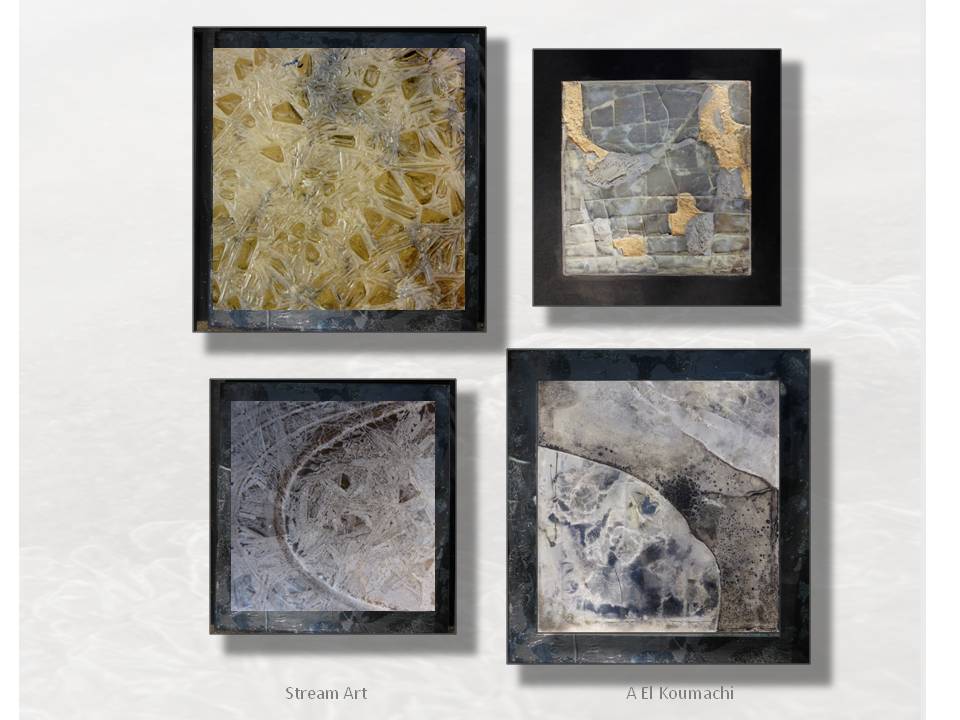 Abdallah El Koumachi est un artiste autodidacte, il explore l’art abstrait des lumières et des transparences avec différentes techniques qui mettent en valeur les matériaux utilisés: métaux, verres, sables. Chacun apporte ses qualités: le brillant de l’aluminium et la dureté de l’inox mettent en valeur la fragilité translucide des verres qui apporte aussi de la profondeur.