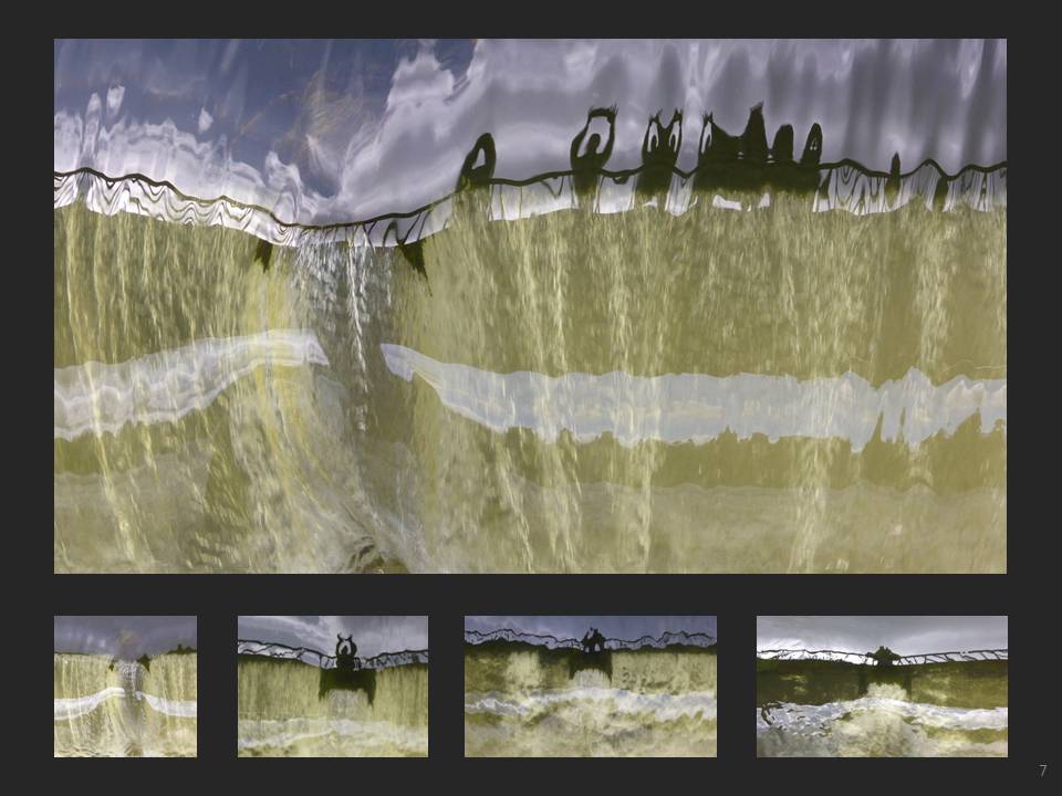 Vue plongeante à un mètre au dessus de la chute d'eau très pure qui capte tous les reflets d'un ciel changeant. Vent léger et variable, la machine à créer des formes fonctionne à plein.