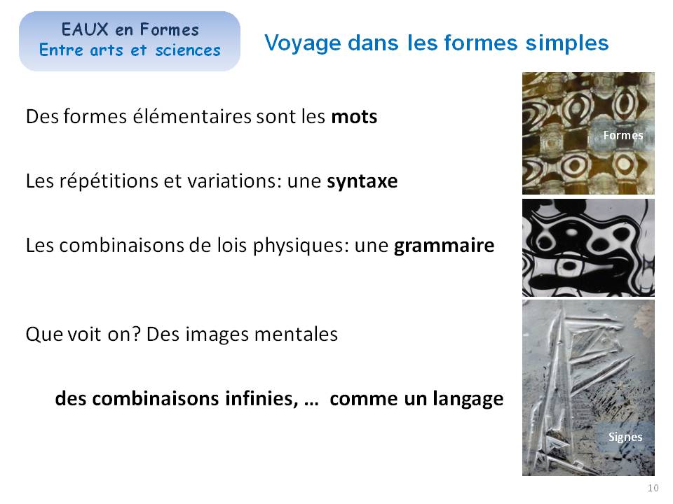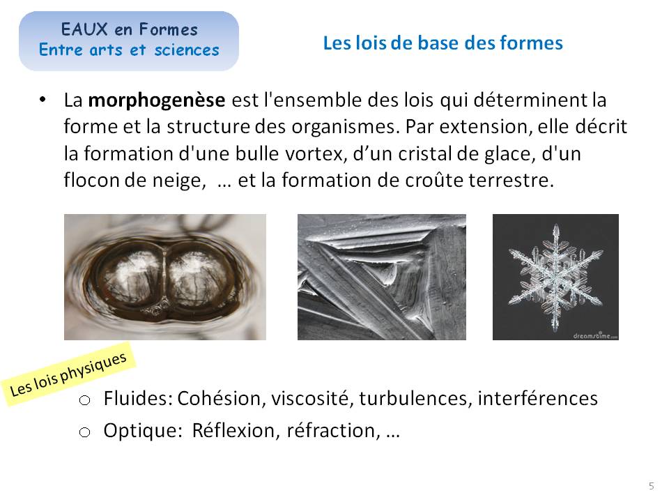 Les formes de l'eau sont définies par des lois simples: mais leurs combinaisons sont complexes sont des terrains de recherche illimités pour les sciences et les arts.