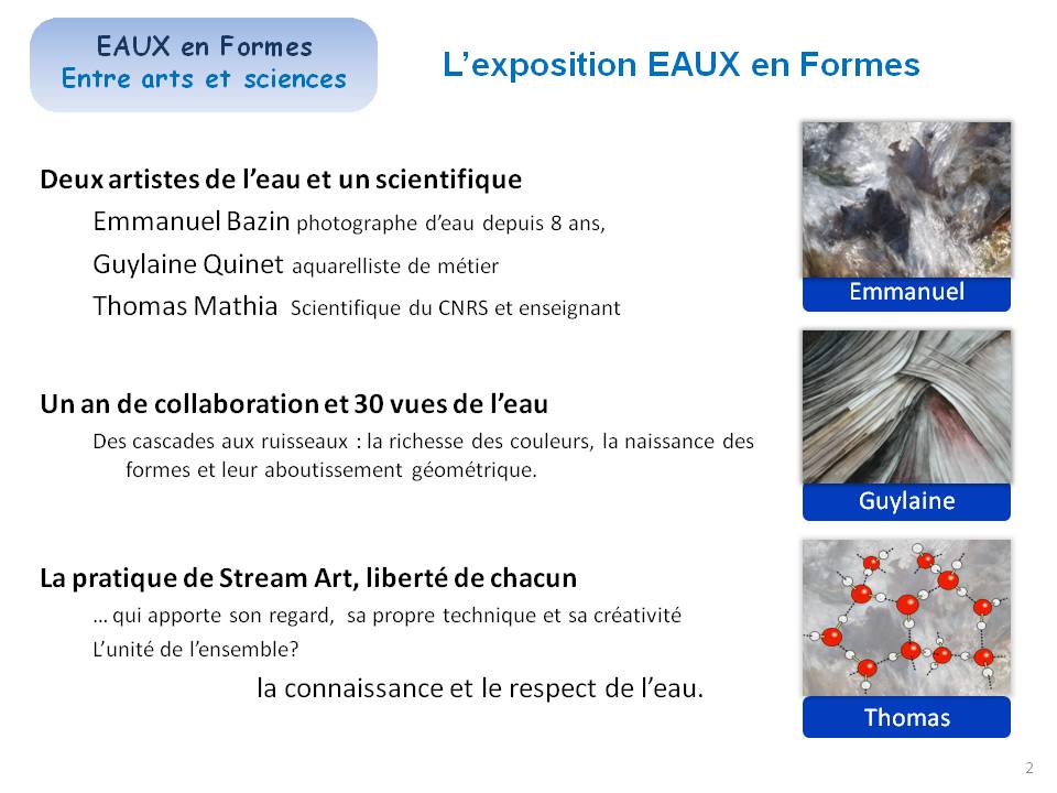 et par la conférence l'Univers [artistique] dans un filet d'eau par Thomas Mathia, directeur de recherche au CNRS et par Emmanuel Bazin.